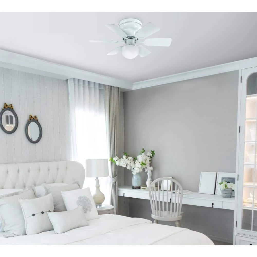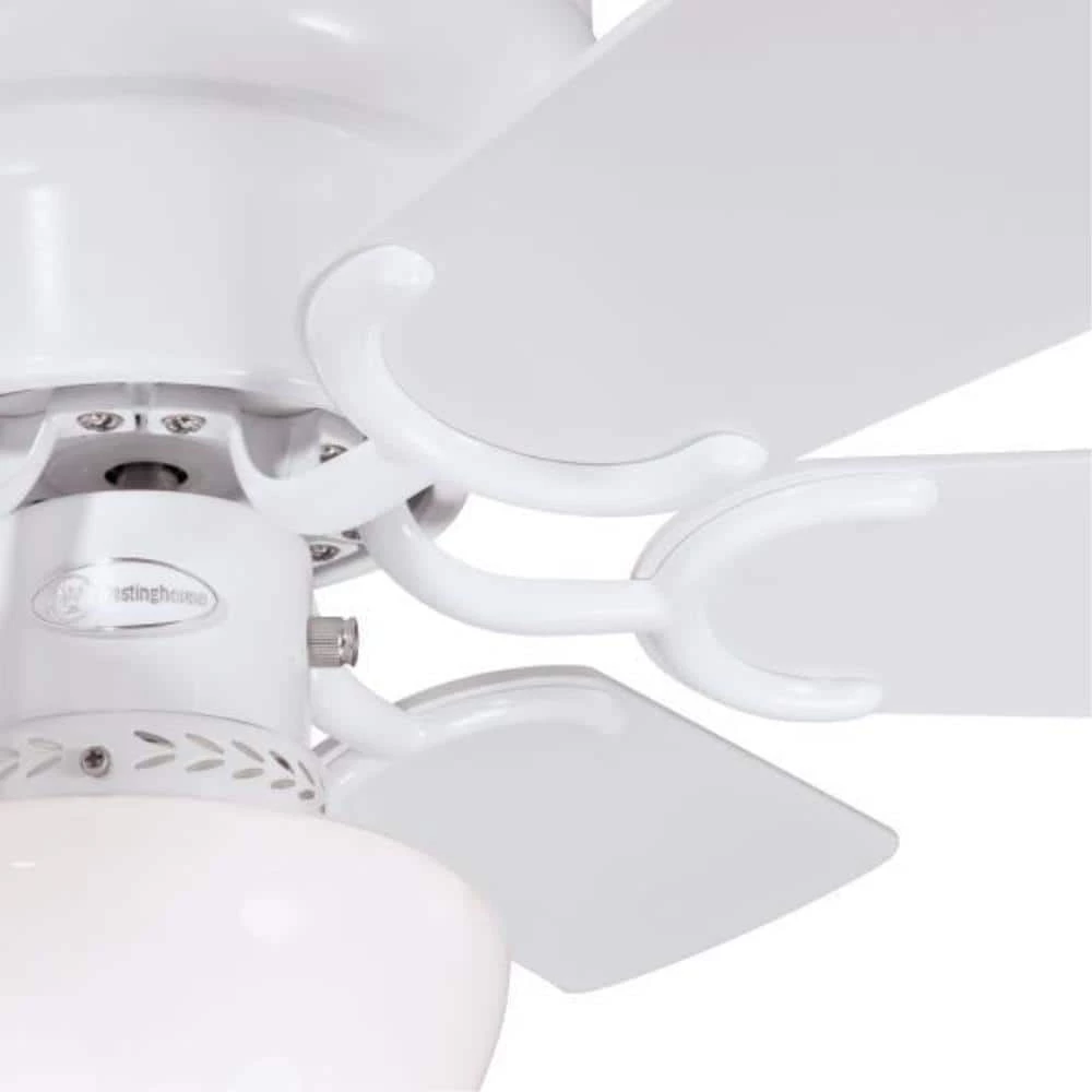 The Petite, 30 in. ceiling fan offers energy-efficient illumination and powerful air circulation. Perfect for small rooms with low ceilings, this flush mount ceiling fan includes an omni A19 LED light bulb for long-lasting brightness. This attractive white ceiling fan comes with complementary reversible wood finish blades in white and white washed pine finish. Each combination along with the mushroom glass light kit adds traditional style. Westinghouse ceiling fans are backed by a lifetime warranty on the motor and a 2-year warranty on all other parts. Westinghouse is a trusted, global brand. Westinghouse knows lighting and offers products with exceptional quality, reliability and functionality. Product reference number 72308.
