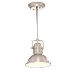 1-Light Brushed Nickel Mini Pendant with Frosted White Alabaster Glass Shade by Westinghouse