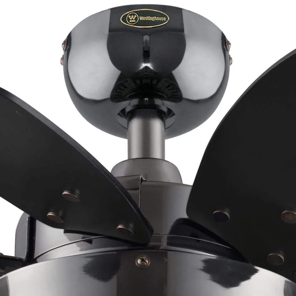 - 6 blades with black finish and graphite finish complement the gun metal fan
