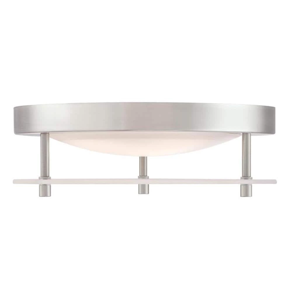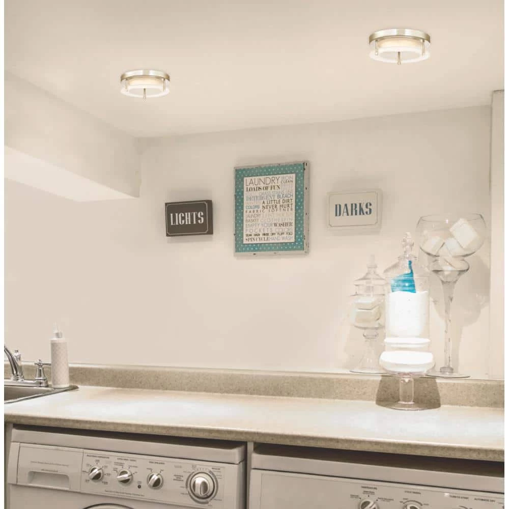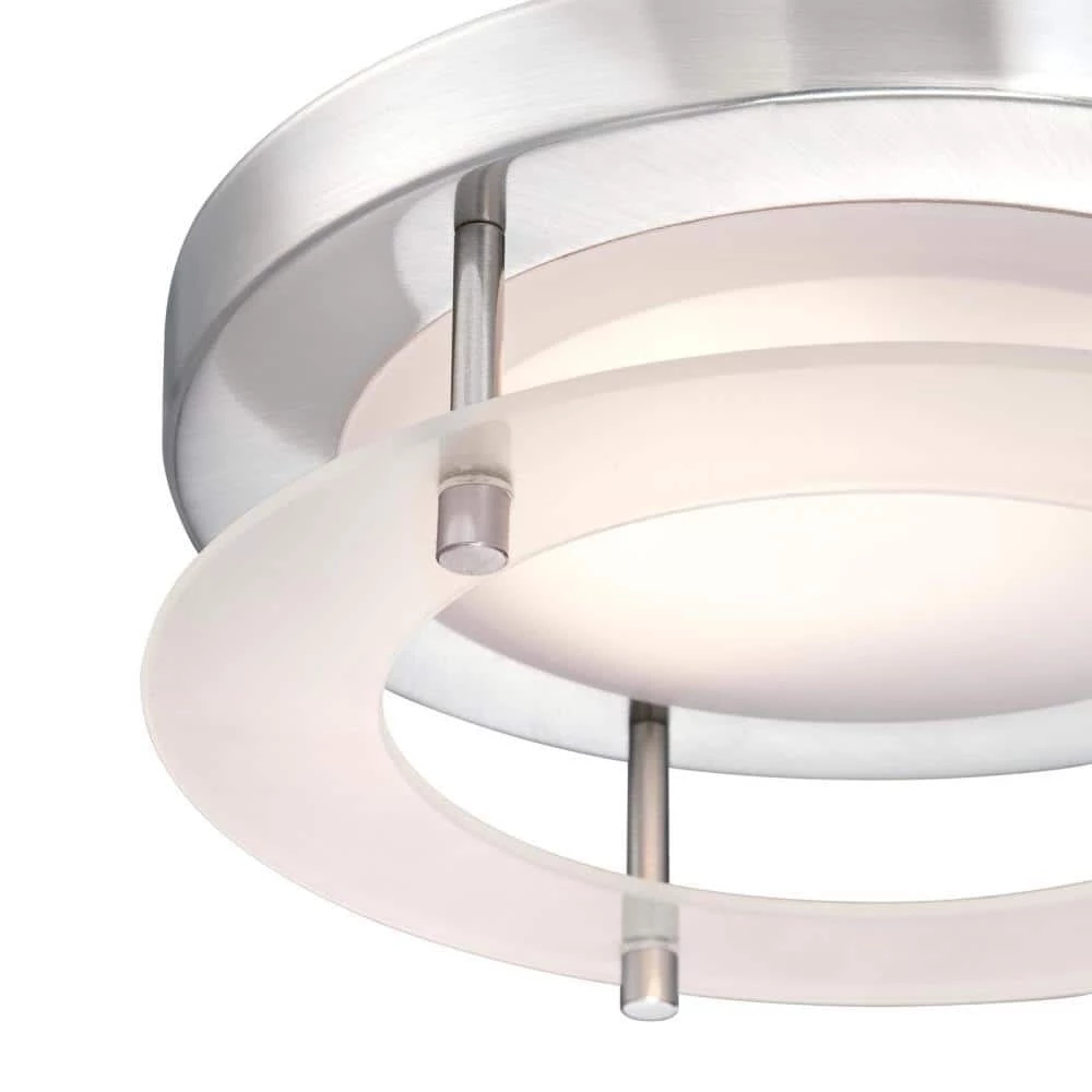 - Modern design, sleek brushed nickel finish and frosted acrylic ring
