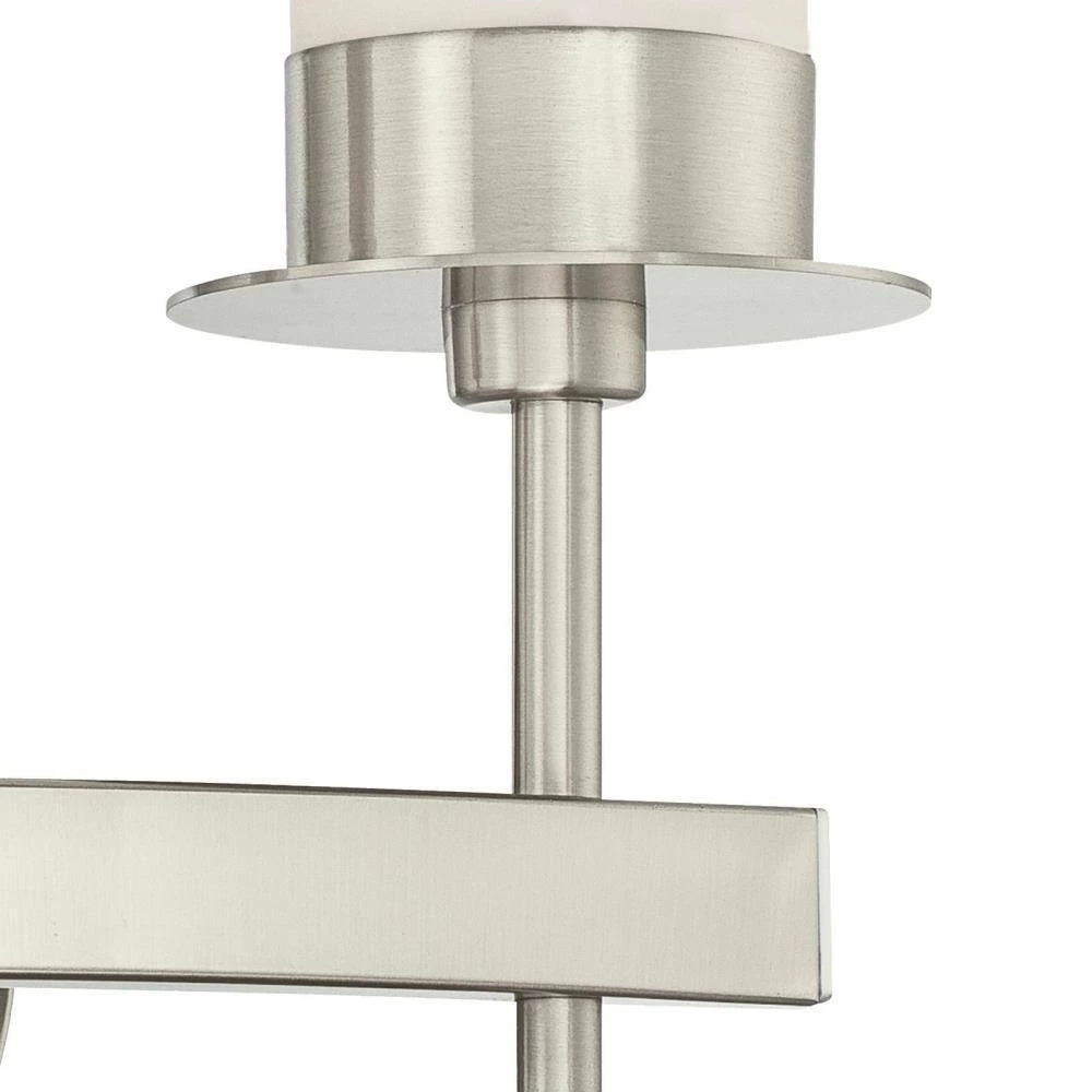 - Brushed nickel finish and hand blown frosted opal glass shades add sophisticated style