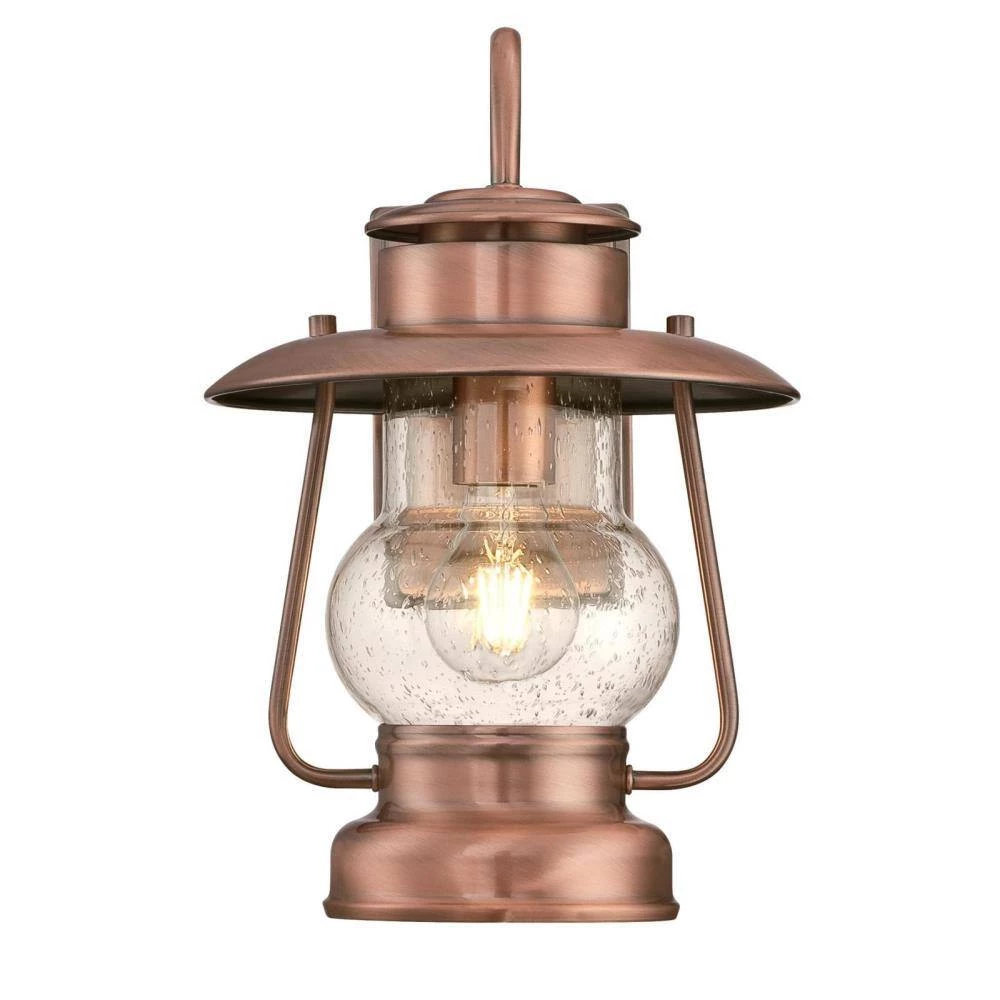 - Unique lantern design combined with washed copper finish adds charming style to any outdoor space