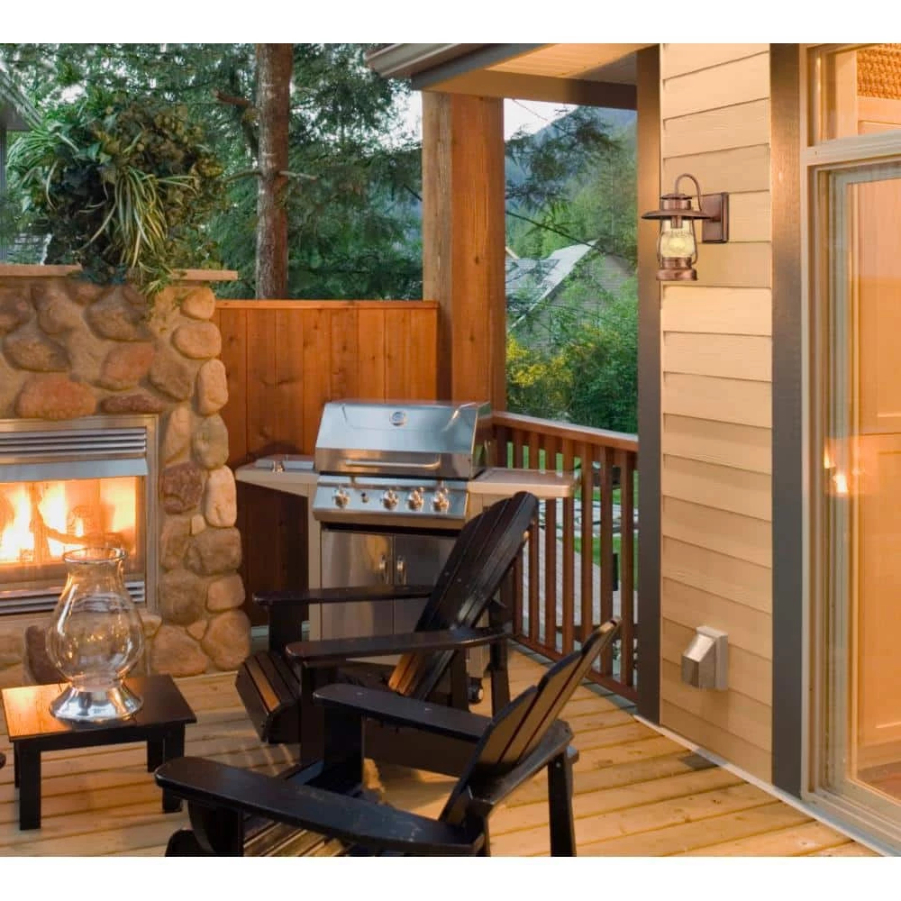 - 1-light outdoor fixture is perfect for use by a front or back entryway, garage door, patio or deck area