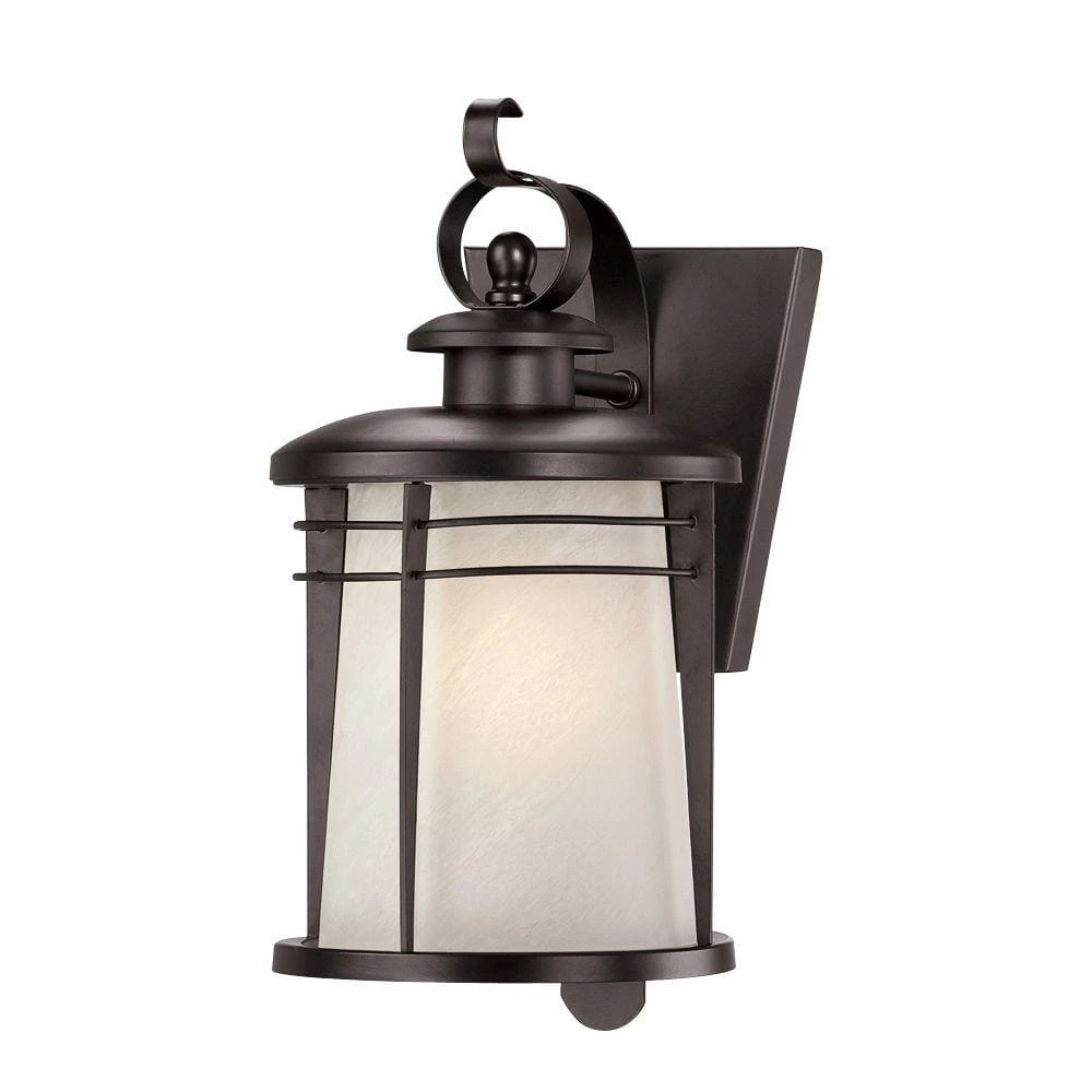 With a weathered bronze finish, and white alabaster glass, the Westinghouse Senecaville Wall Lantern provides a stylish accent for your home. The fixture evokes a classic Craftsman design yet has a modern feel. Dual lines ring the top of the glass shade. The scroll arm holds the body of the lantern from a single pressed loop. Install this lantern by your front or back entryway, garage, or anywhere you want additional light. No matter where you mount it, the fixture will provide a soft glow through the white alabaster glass. The lantern is 13-1/8 in. x 6-1/2 in. (H x W) and extends 8 in. from the wall. The back plate is 6-1/8 in. x 5-3/8 in. (H x W) and the fixture measures 5-1/4 in. high from the center of the outlet box. It uses 1 medium-base light bulb, 100-watt maximum (not included). This Westinghouse exterior fixture is ETL/CETL listed for safety. It is backed by a 5-year limited manufacturer’s warranty against defects in materials and workmanship. Westinghouse is a trusted, global brand. Westinghouse knows lighting and offers products with exceptional quality, reliability and functionality. Product reference number 66741.