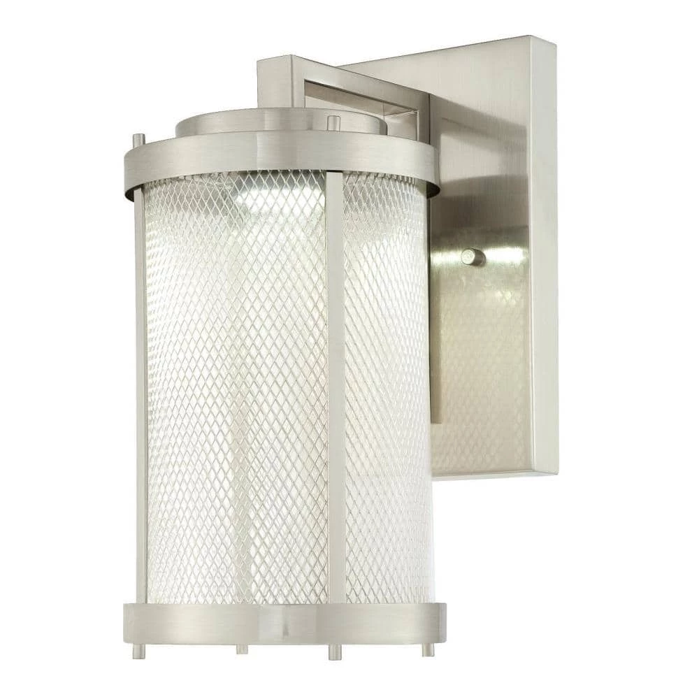 Light up your home’s exterior with the Westinghouse Skyview Outdoor Wall Fixture. The eye-catching contemporary design features brushed nickel mesh enclosed in a clear glass cylinder. Includes a 12-1/2-Watt integrated LED that will provide beautiful light for many years, and you will never need to replace a single bulb. Decorate your front or back entryway with this outdoor wall light. Install next to a garage door, porch, or balcony. This Westinghouse wall mount fixture is ETL/CETL listed for safety. It is backed by a 5-year manufacturer’s warranty against defects in materials and workmanship. Westinghouse is a trusted, global brand. Westinghouse knows lighting and offers products with exceptional quality, reliability and functionality. Product reference number 63121.