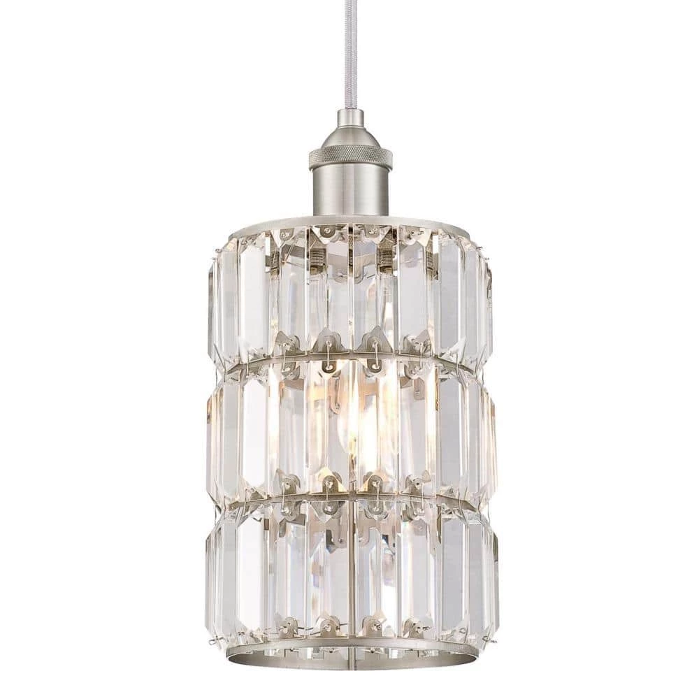 The Sophie 1-Light Mini Pendant design adds a glamorous touch to any room. The brushed nickel finish and braided cord accentuate the vintage-style, and the crystal prisms provide brilliant ambiance when illuminated. Great for enhancing many decor styles from vintage to modern. Suspend in your entryway or living room for a dazzling glow. A beautiful addition to your hallway or foyer, or suspended above your kitchen island, breakfast bar, or table of any kind. Westinghouse is a trusted, global brand. Westinghouse knows lighting and offers products with exceptional quality, reliability and functionality. Product reference number 63389.