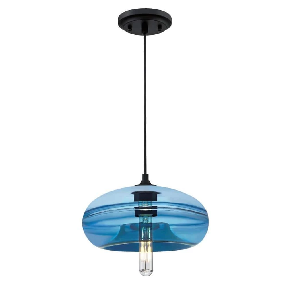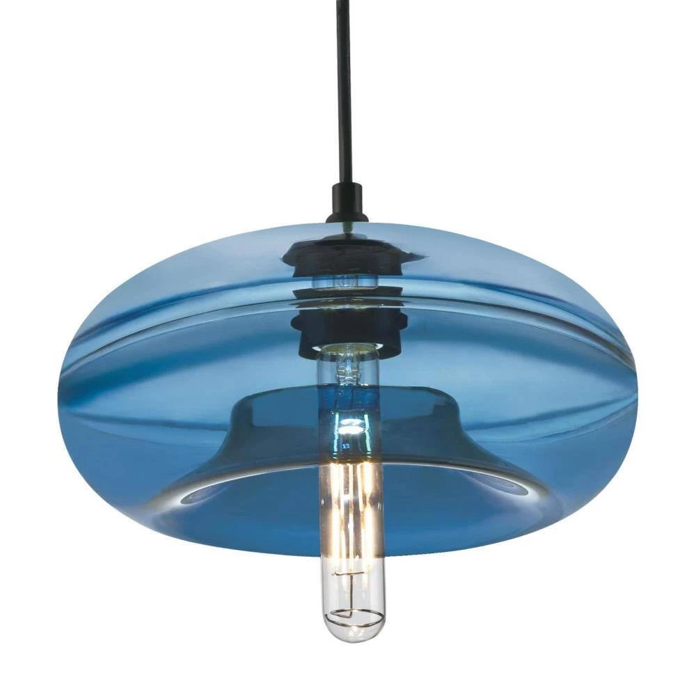 - Matte black pendant with contemporary style sapphire blue glass shade