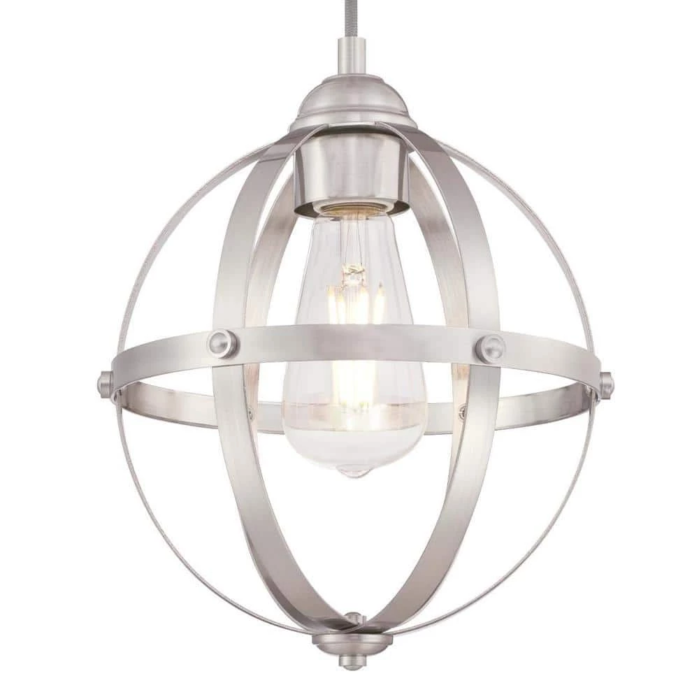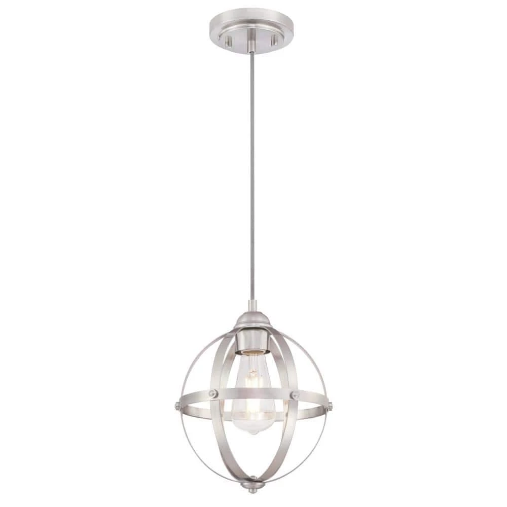 - Eye-catching one-light spherical mini pendant with brushed nickel finish compliments a wide range of interior decor styles