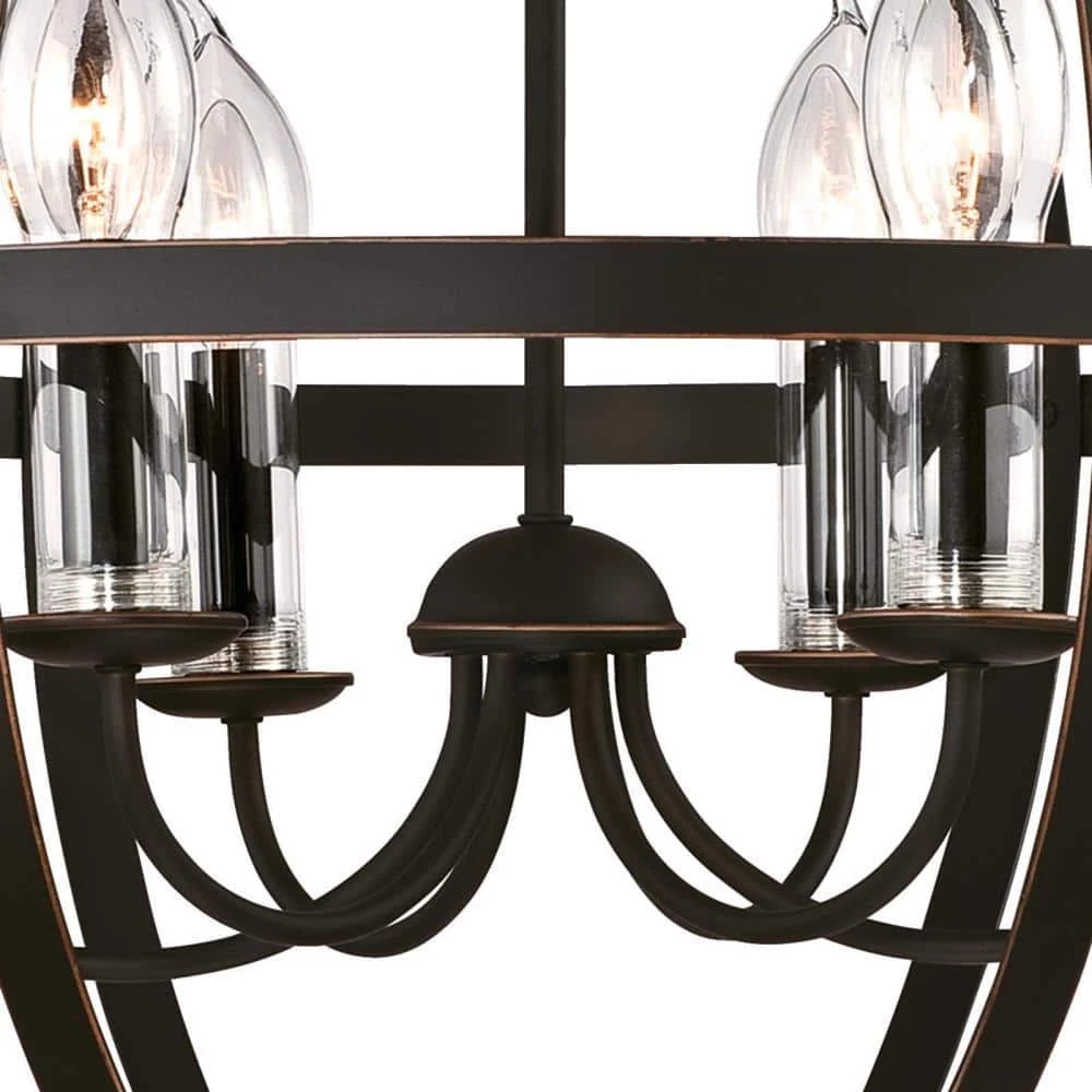 Light up your outdoor living spaces with the Westinghouse Stella Mira Chandelier. The oil rubbed bronze finish is hand-rubbed to highlight the design features of this rustic chandelier. The classic six light candelabra features clear glass candle covers, enhancing the beautiful glow. Light up a front or back entryway with this extraordinary fixture. Create enchanting ambiance for al fresco dining. Perfect for farmhouse style doorways and traditional outdoor spaces. This Westinghouse hanging chandelier is ETL/CETL listed for safety. It is backed by a 5-year manufacturer’s warranty against defects in materials and workmanship. Westinghouse is a trusted, global brand. Westinghouse knows lighting and offers products with exceptional quality, reliability and functionality. Product reference number 63390.