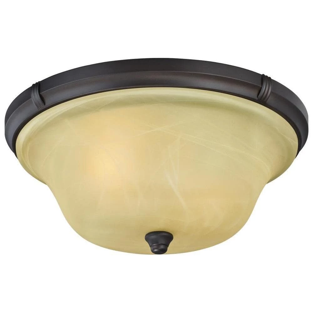 With oil rubbed bronze finish and traditional design, this Westinghouse Tolbut 2-Light Ceiling Fixture will add warmth to any room. The amber alabaster glass creates inviting illumination and blends beautifully with any decor. Perfect for an entryway, dining room, bedroom, or hallways, installs this fixture on low or high ceilings. No matter where you place it, you will enjoy the soft, even light of the Tolbut flush ceiling fixture. The fixture is 5-1/2 in. x 13 in. (H x D). This Westinghouse indoor ceiling fixture is ETL/CETL listed for safety. It is backed by a 5-year manufacturer’s warranty against defects in materials and workmanship. Westinghouse is a global brand with a simple philosophy: make life easier for everyone who buys its products. Westinghouse products are designed for exceptional quality, reliability, and functionality. Product reference number 63424.