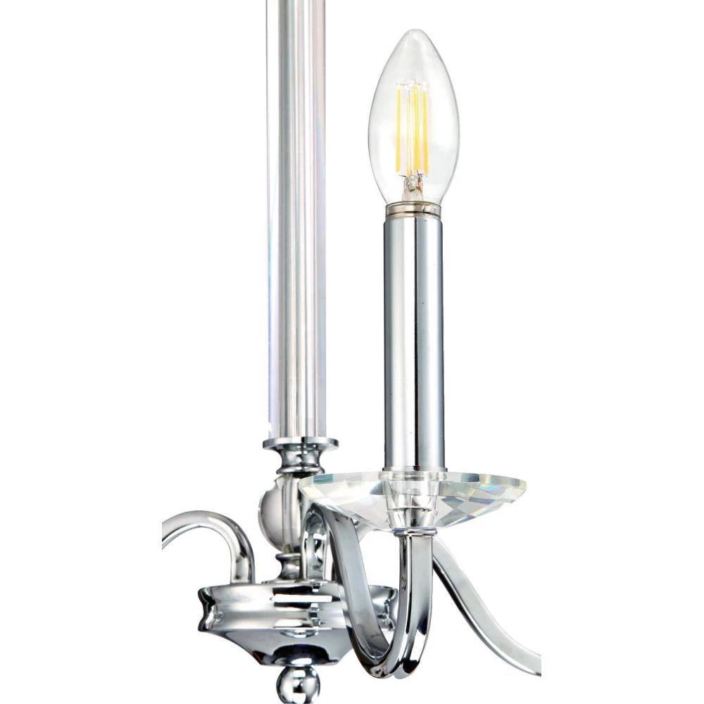 The contemporary design of the Versailles 3-Light Chandelier makes a luxurious centerpiece with it’s a sleek finish and sparkling accents. The lustrous chrome finish with clear glass accents is perfect for adding shine in any room. Make a statement in a foyer or living room, over a large dining room table, kitchen island or walk-in closet. The chandelier measures 19-3/4 in. x 15-1/4 in. (H x D), chain 36 in. long, cord is 60 in. long. Backed by a 5-year limited manufacturer’s warranty against defects in materials and workmanship. Westinghouse is a trusted, global brand. Westinghouse knows lighting and offers products with exceptional quality, reliability and functionality. Product reference number 63320.