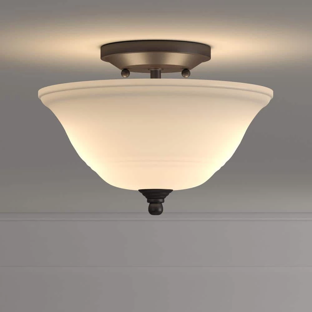 The Westinghouse Wensley 2-Light Ceiling Fixture provides an elegant accent for your home. A white alabaster glass shade hangs from a simple, round base and provides inviting light. The base and finial feature a luxurious oil rubbed bronze finish. Install this fixture in rooms with low or high ceilings. The fixture is 7-1/4 in. x 10-1/8 in. (H x D). This Westinghouse interior ceiling fixture is UL listed for safety. It is backed by a 5-year limited manufacturer’s warranty against defects in materials and workmanship. Product reference number 66223.