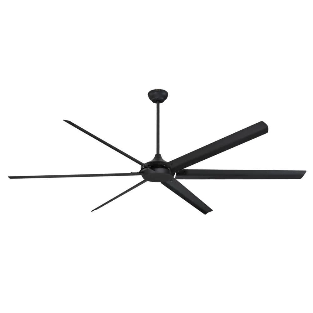 The Westinghouse 100 in. Widespan ceiling fan is durably constructed for cooling large industrial and residential spaces. Using size instead of velocity, this high volume, low speed fan provides premium air circulation meant for cooling large areas, workshops, high ceiling great rooms, larger living areas and lofts. The Widespan comes in a matte black finish with 6 black aluminum blades, and features a 6-speed remote control for ultimate convenience and ease. A DC motor ensures energy-saving performance and quiet functionality. Backed by a lifetime warranty on the motor and a 2-year warranty on all other parts. This fan must be hung at least 10 ft. above the floor. Westinghouse is a trusted, global brand. Westinghouse knows lighting and offers products with exceptional quality, reliability and functionality. Product reference number 72248.