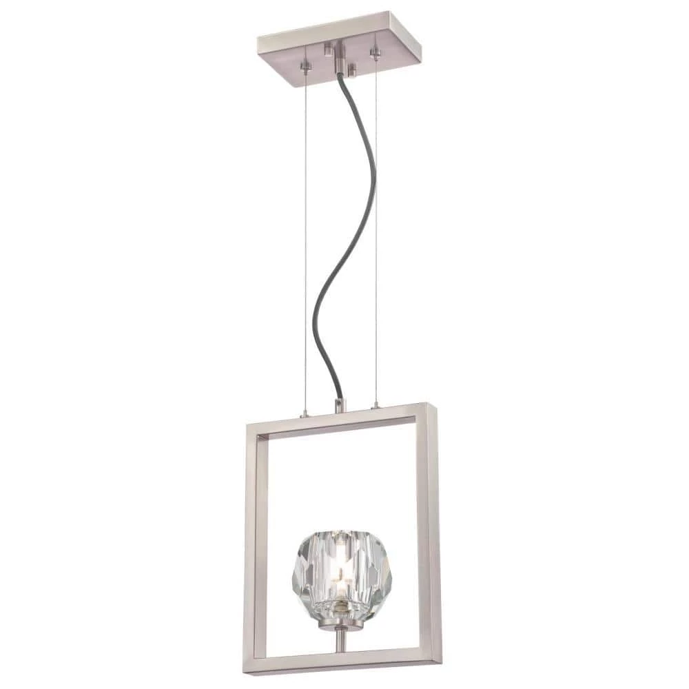 The Westinghouse Zoa pendant’s faceted crystal shade illuminates with dazzling energy-efficient LED light. Enhanced with a glamorous brushed nickel finish, this one-light pendant brings jewel-like radiance to any space when one or more are suspended above a kitchen island or breakfast bar. Westinghouse is a trusted, global brand. Westinghouse knows lighting and offers products with exceptional quality, reliability and functionality. Product reference number 63676.